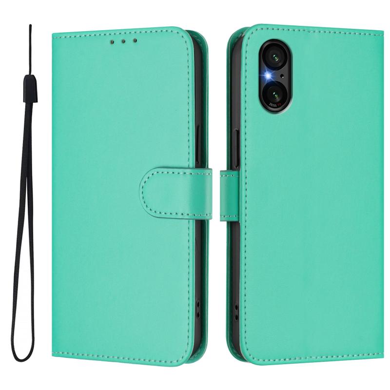 For Sony Xperia 5 V Skin Feel Solid Color Leather Phone Case with Lanyard(Green)