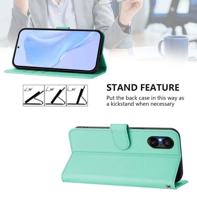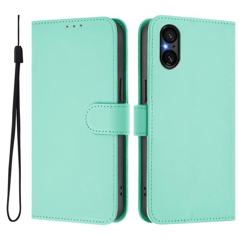 For Sony Xperia 5 V Skin Feel Solid Color Leather Phone Case with Lanyard(Mint Green)