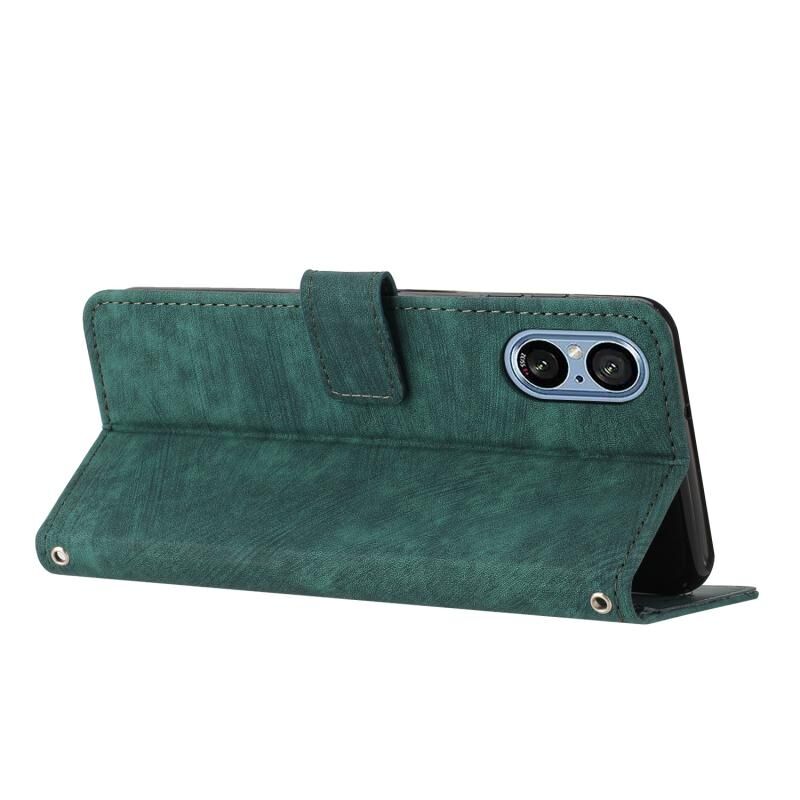 Για το Sony Xperia 5 V Skin Feel Stripe Pattern δερμάτινη θήκη τηλεφώνου με κορδόνι (πράσινο)