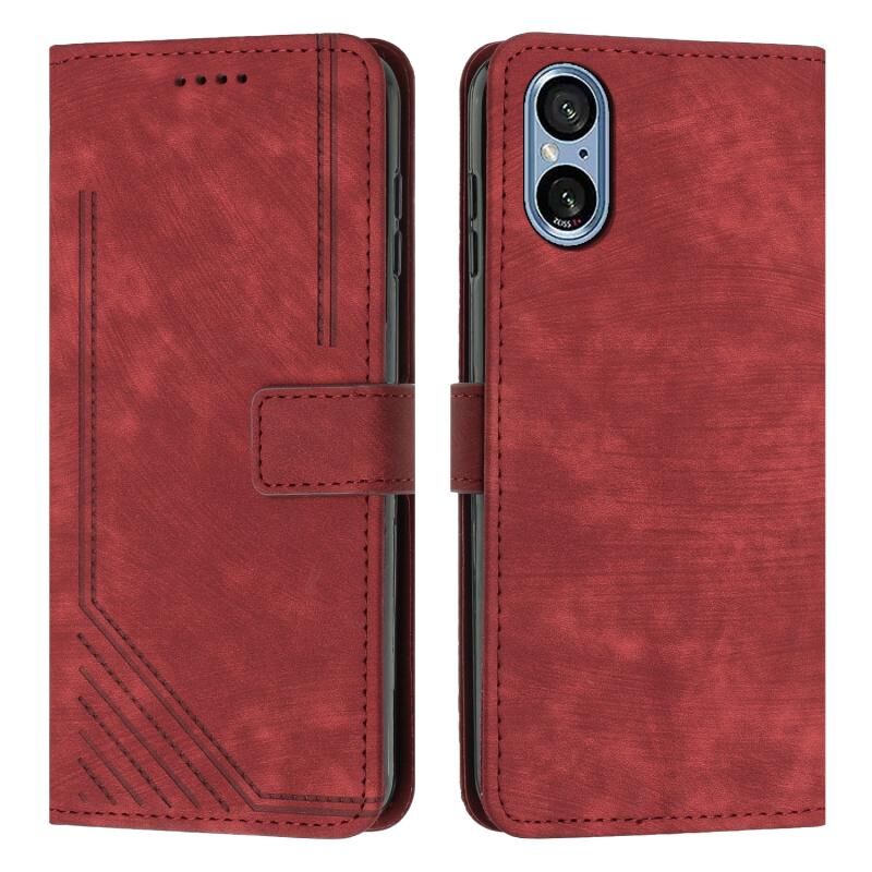 Για το Sony Xperia 5 V Skin Feel Stripe Pattern δερμάτινη θήκη τηλεφώνου με κορδόνι (κόκκινο)