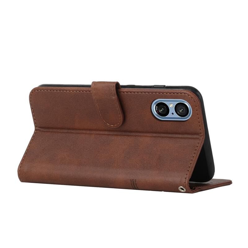 For Sony Xperia 5 V Stitching Calf Texture Buckle Leather Phone Case(Brown)