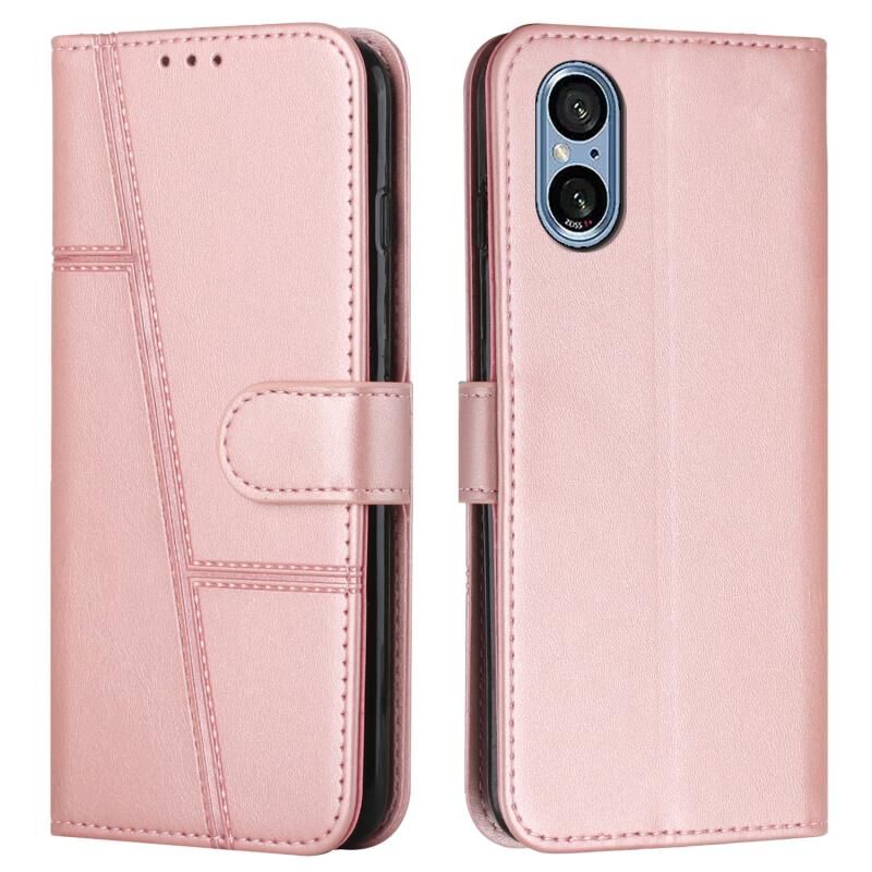Για Sony Xperia 5 V ραφή μοσχάρι υφή πόρπη δέρμα τηλέφωνο υπόθεση (ροζ)