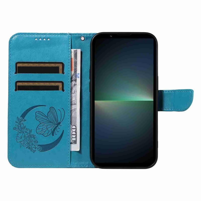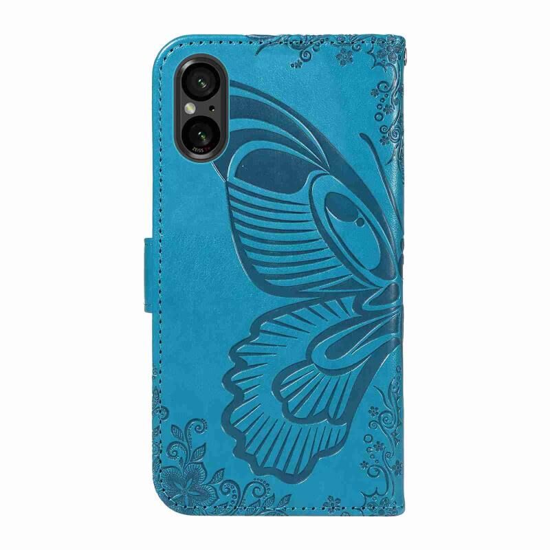 Θήκη τηλεφώνου από δέρμα με ανάγλυφο σχέδιο πεταλούδας Swallowtail για Sony Xperia 5 V (Μπλε)