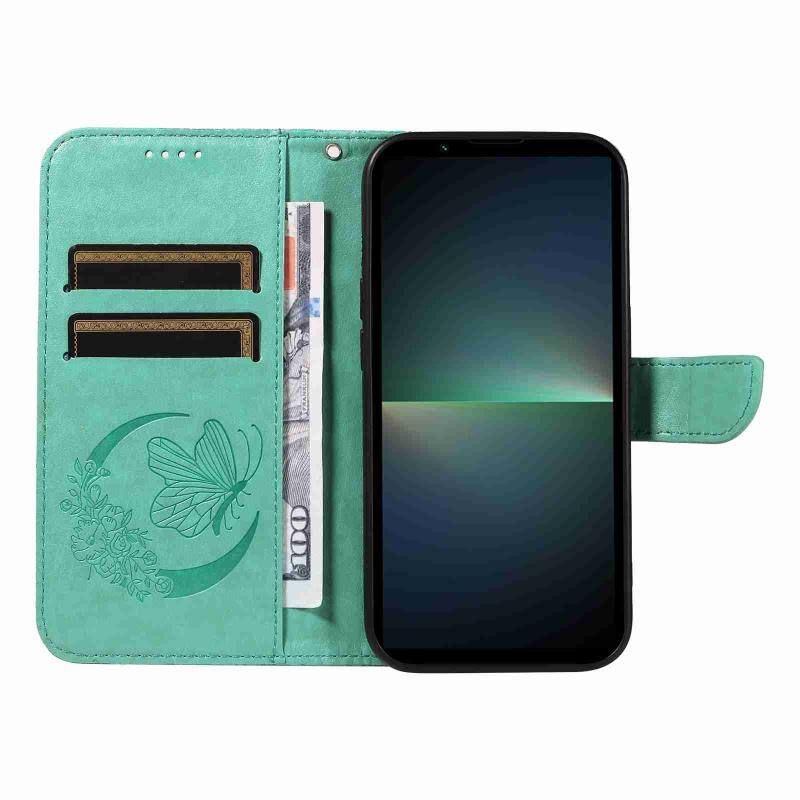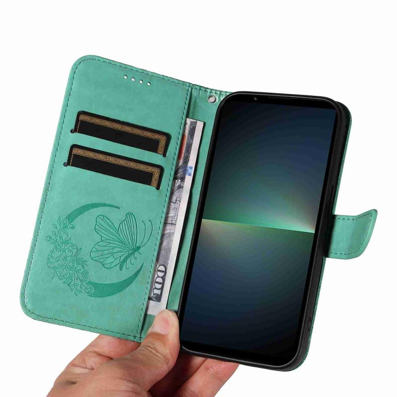 For Sony Xperia 5 V Swallowtail Butterfly Embossed Leather Phone Case(Green)