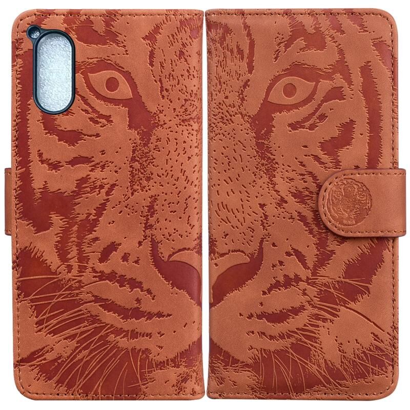 Θήκη τηλεφώνου από δέρμα με σχέδιο Tiger Embossing για Sony Xperia 5 V (Μαύρο)