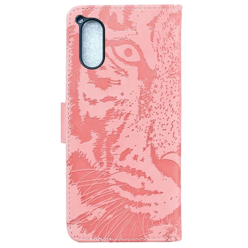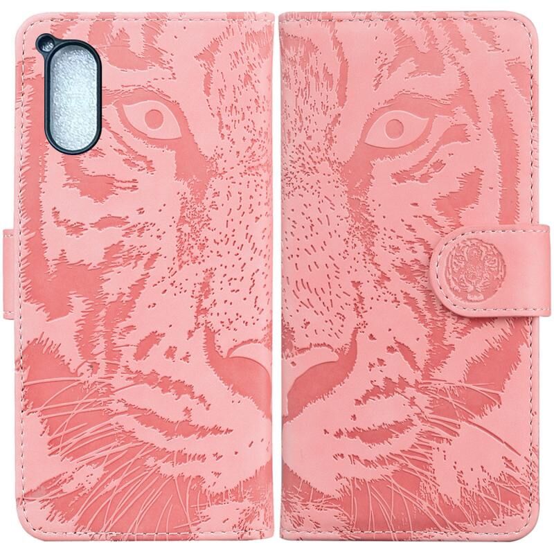 Θήκη τηλεφώνου από δέρμα με σχέδιο Tiger Embossing για Sony Xperia 5 V (Μαύρο)