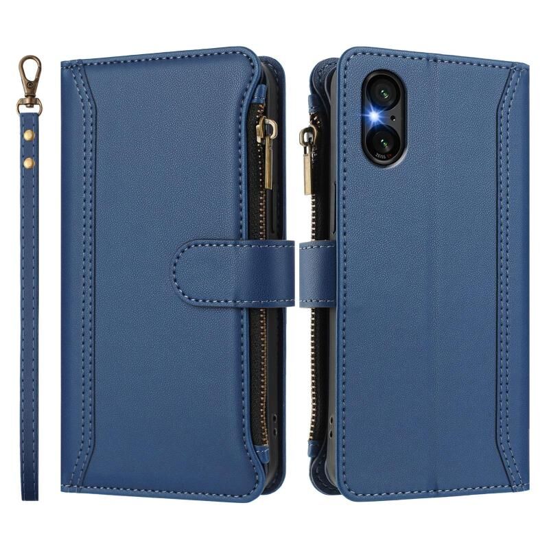 For Sony Xperia 5 VI 2024 Magnetic Closure 9 Card Slots Zipper Leather Case with Hand Strap(Dark Blue)