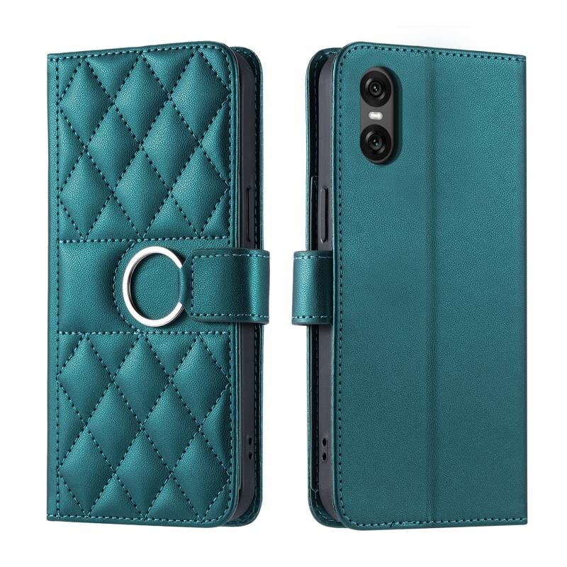 For Sony Xperia 5 VI 2024 Ring Buckle Rhombic Leather Phone Case(Green)