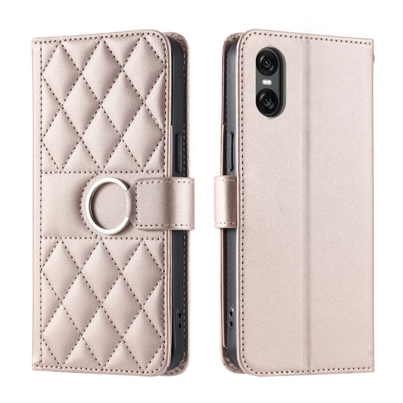 For Sony Xperia 5 VI 2024 Ring Buckle Rhombic Leather Phone Case(Rose Gold)