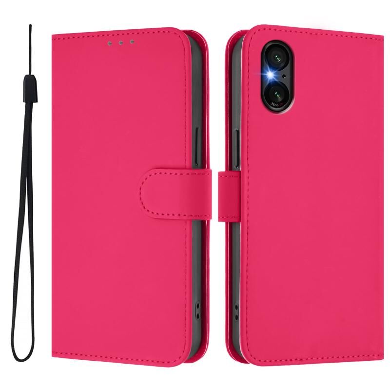 For Sony Xperia 5 VI 2024 Skin Feel Solid Color Leather Phone Case with Lanyard(Rose Red)