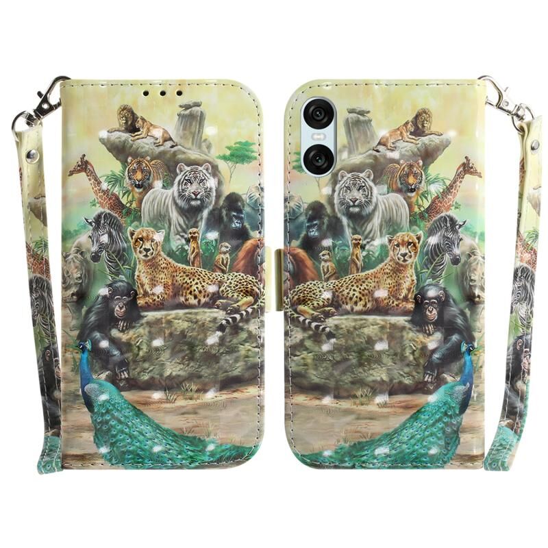 Θήκη τηλεφώνου δέρμα κατακόρυφης αναδίπλωσης 3D με έγχρωμα οριζόντια σχέδια για Sony Xperia 5 VI (Ζωολογικός κήπος)
