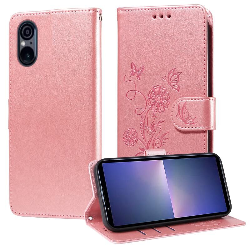 Θήκη τηλεφώνου δερμάτινη με ανάγλυφα λουλούδια πεταλούδας για Sony Xperia 5 VI (Μωβ)