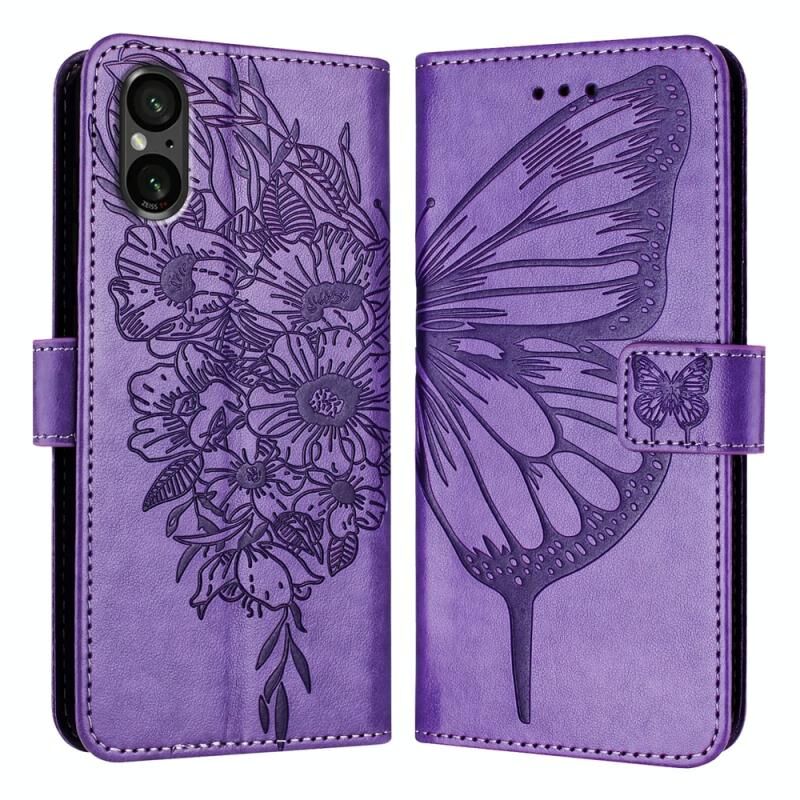 For Sony Xperia 5 VI Embossed Butterfly Leather Phone Case(Light Purple)