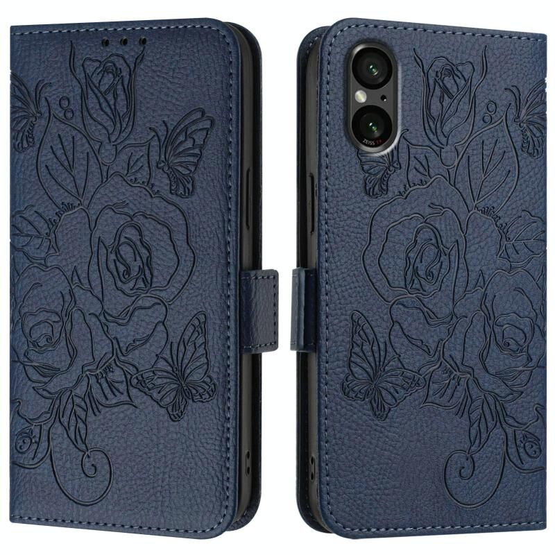 Για Sony Xperia 5 VI ανάγλυφο Rose RFID Anti-theft δερμάτινη θήκη τηλεφώνου (σκούρο μπλε)