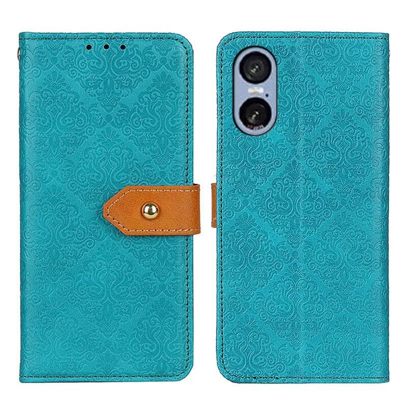 Θήκη τηλεφώνου από δέρμα με ανάγλυφο ευρωπαϊκό floral για Sony Xperia 5 VI (Μπλε)