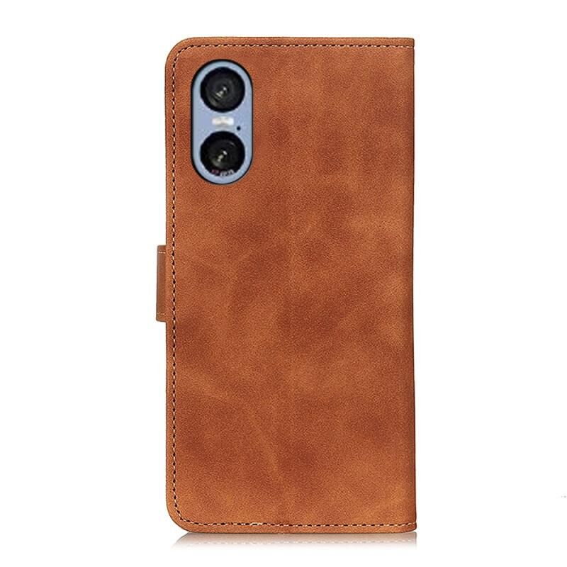 Θήκη τηλεφώνου δερμάτινη, οριζόντια αναδιπλούμενη με ανάγλυφη υφή Retro για Sony Xperia 5 VI KHAZNEH (Κόκκινη)