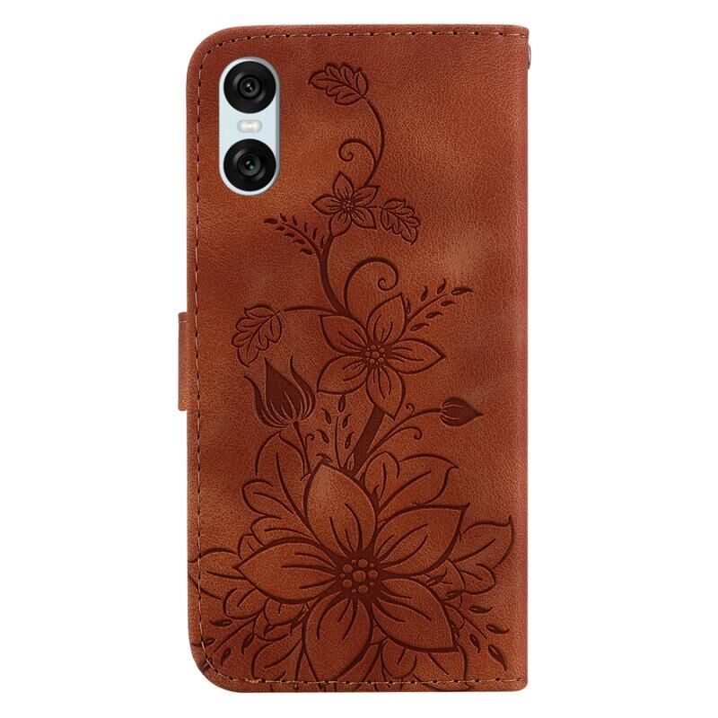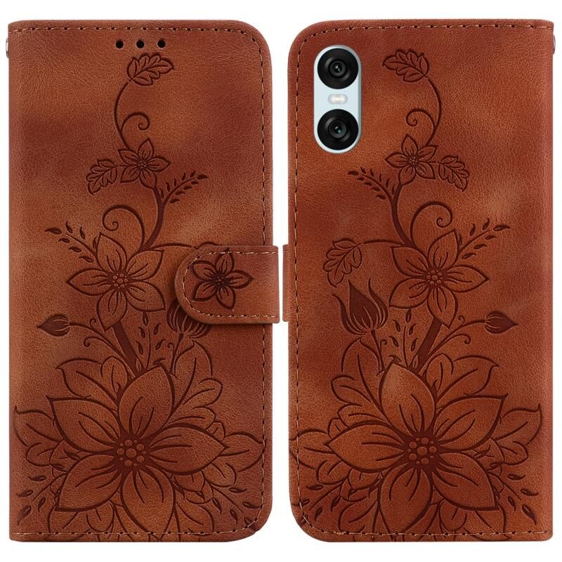 Για Sony Xperia 5 VI Lily ανάγλυφη δερμάτινη θήκη τηλεφώνου (καφέ)