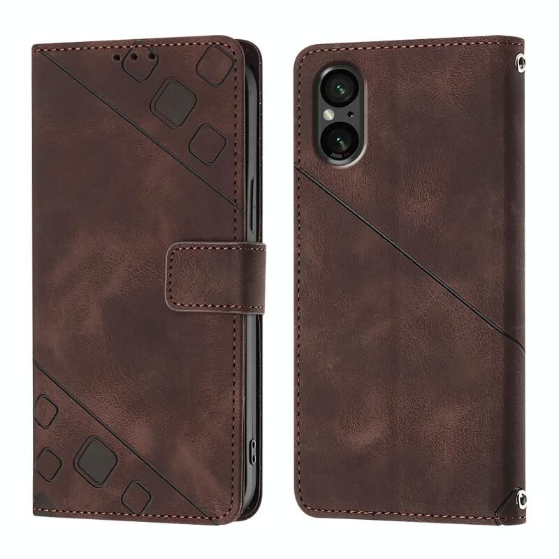 Για Sony Xperia 5 VI Skin-feel ανάγλυφη δερμάτινη θήκη τηλεφώνου (καφέ)