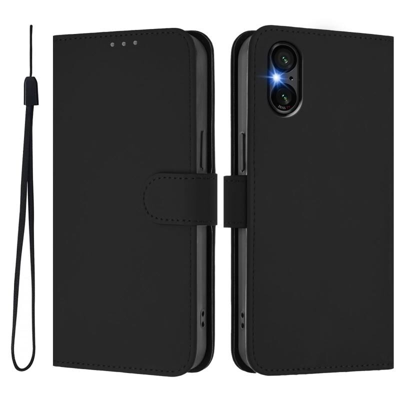 For Sony Xperia 5 VI Skin Feel Solid Color Leather Phone Case with Lanyard(Black)