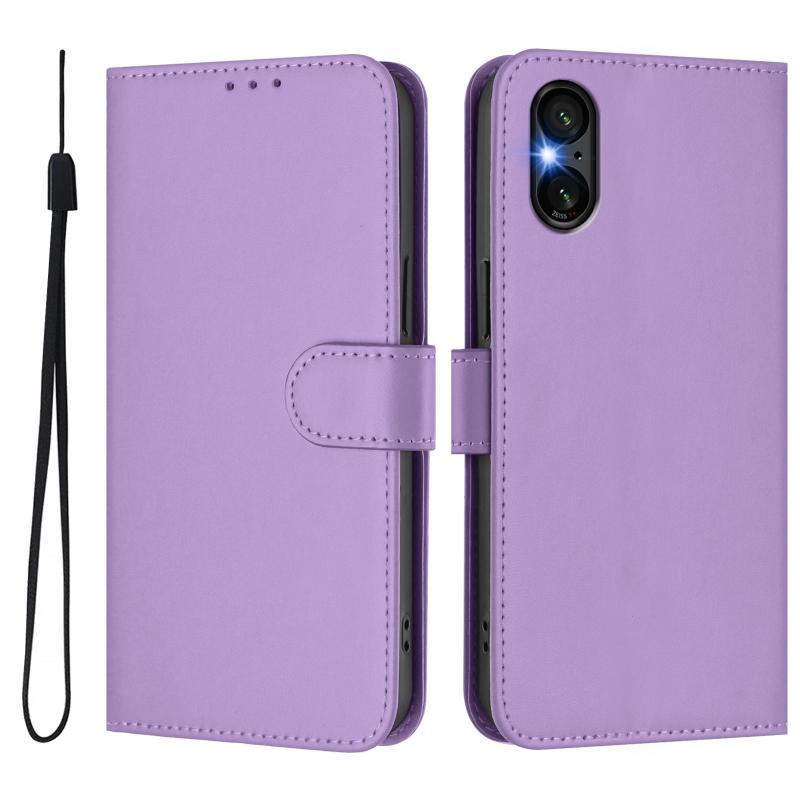 For Sony Xperia 5 VI Skin Feel Solid Color Leather Phone Case with Lanyard(Lavender Purple)