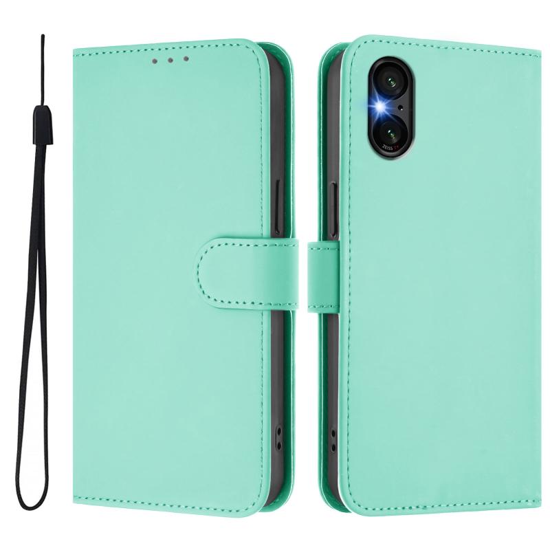 For Sony Xperia 5 VI Skin Feel Solid Color Leather Phone Case with Lanyard(Mint Green)