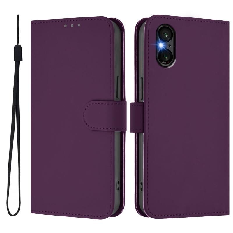 For Sony Xperia 5 VI Skin Feel Solid Color Leather Phone Case with Lanyard(Violet)