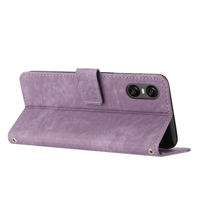 Για το Sony Xperia 5 VI δέρμα αίσθηση λωρίδα μοτίβο δερμάτινη θήκη τηλεφώνου με κορδόνι (μωβ)