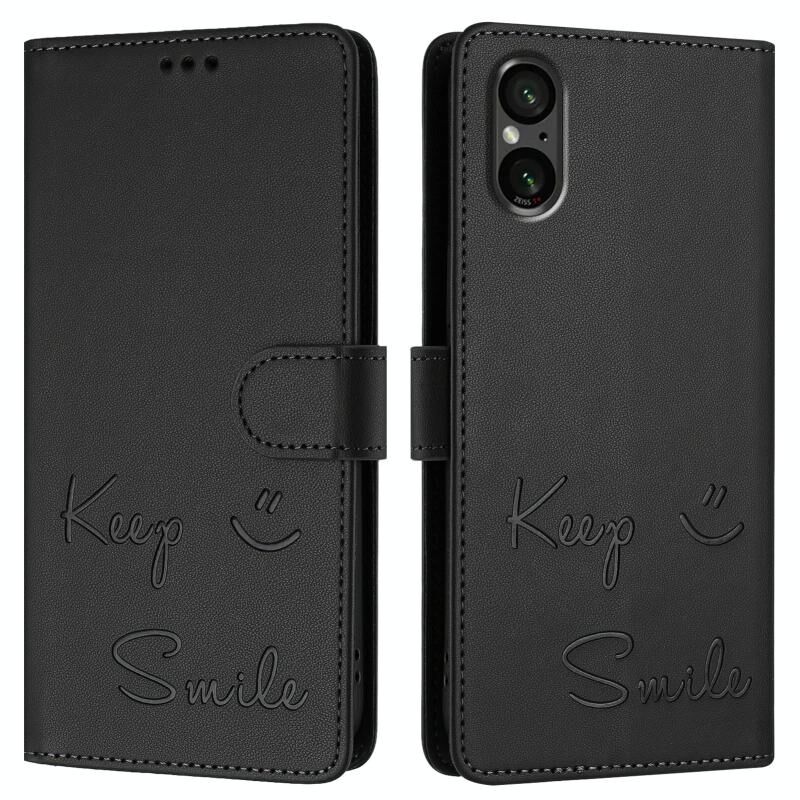 Για Sony Xperia 5 VI Smile ανάγλυφο RFID δερμάτινη θήκη τηλεφώνου (Μαύρο)