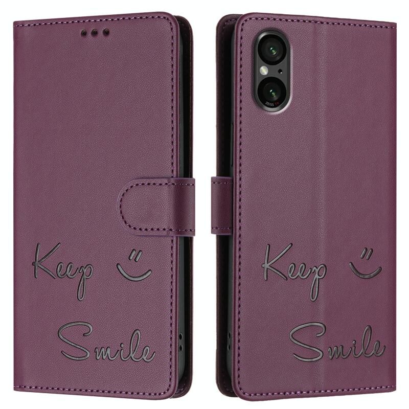 Για Sony Xperia 5 VI Smile ανάγλυφο RFID δερμάτινη θήκη τηλεφώνου (Violet)