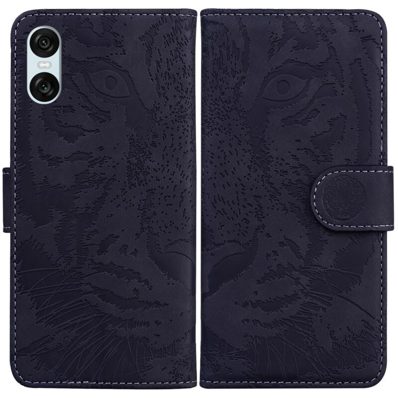 Θήκη τηλεφώνου από δέρμα με σχέδιο Tiger Embossing για Sony Xperia 5 VI (Μαύρο)