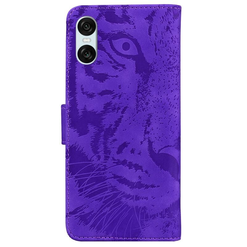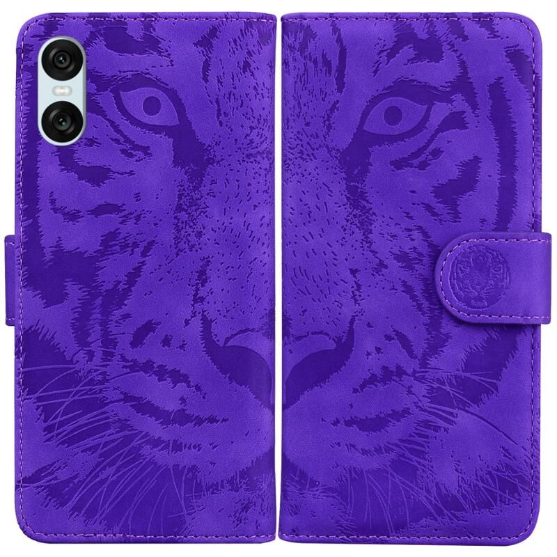 Θήκη τηλεφώνου από δέρμα με σχέδιο Tiger Embossing για Sony Xperia 5 VI (Μαύρο)