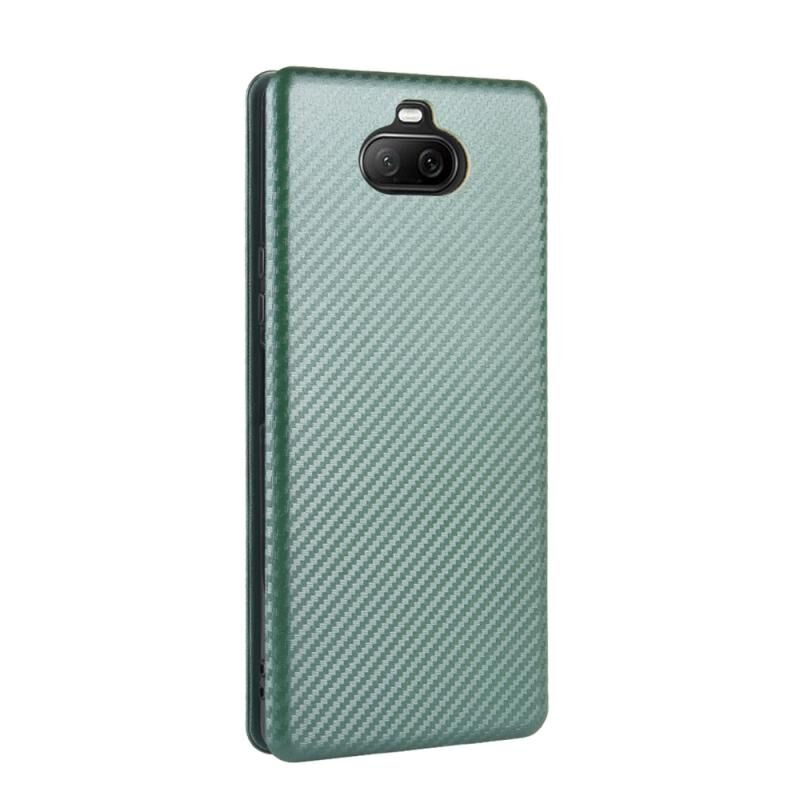 Για το Sony Xperia 8 Carbon Fiber Texture Horizontal Flip TPU + PC + PU Leather Case με υποδοχή κάρτας (πράσινο)