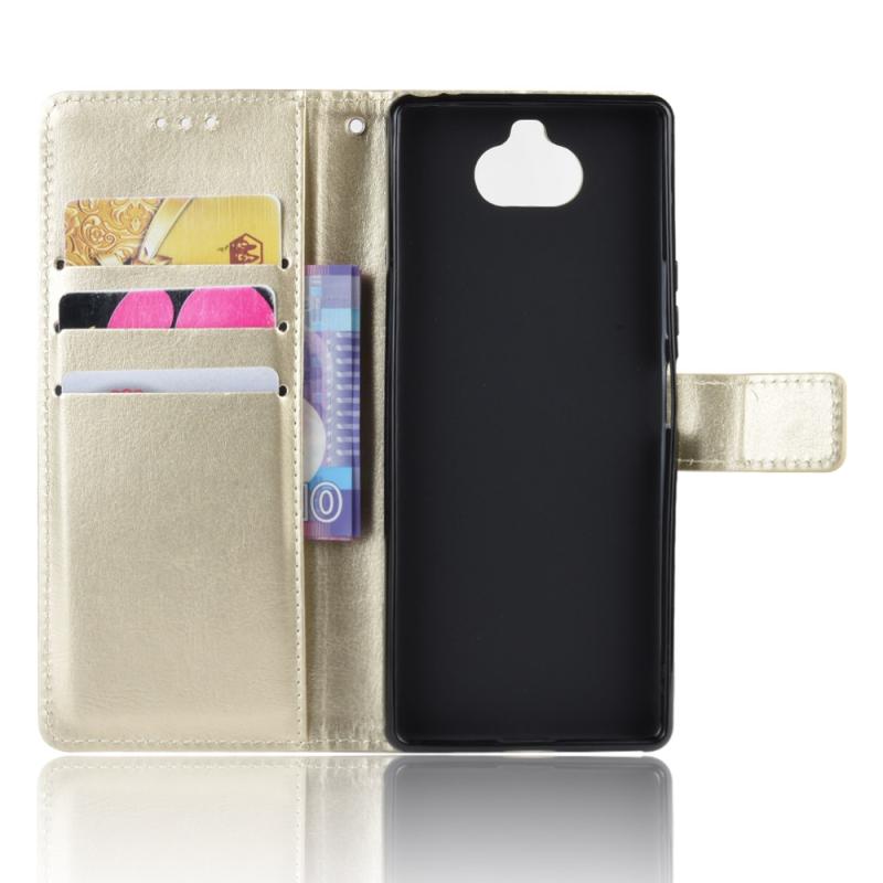 For Sony Xperia 8 Retro Crazy Horse Texture Horizontal Flip Leather Case , with Holder & Card Slots & Photo Frame(Gold)