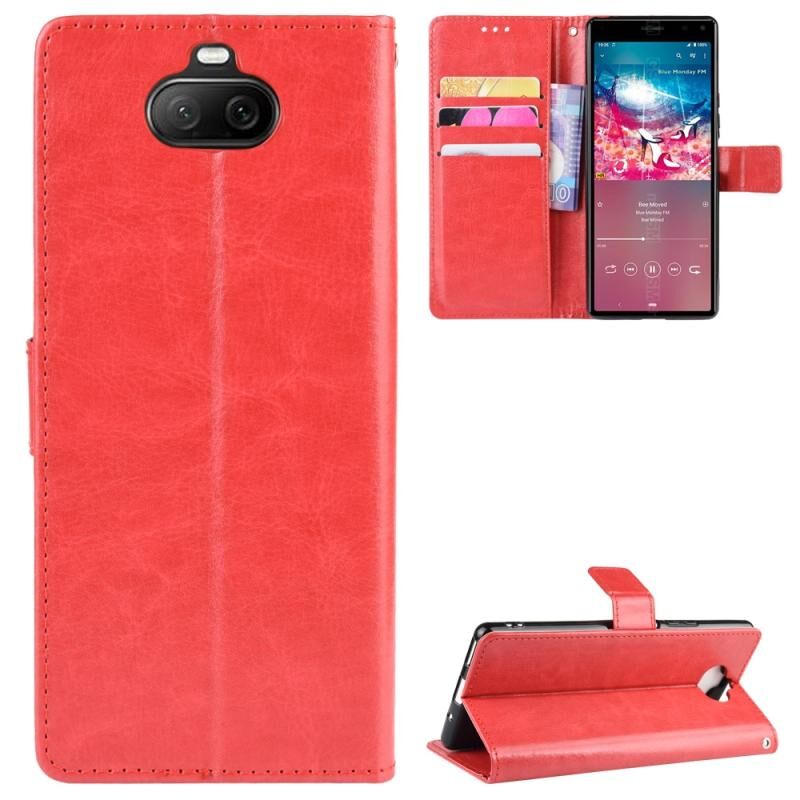For Sony Xperia 8 Retro Crazy Horse Texture Horizontal Flip Leather Case , with Holder & Card Slots & Photo Frame(Red)