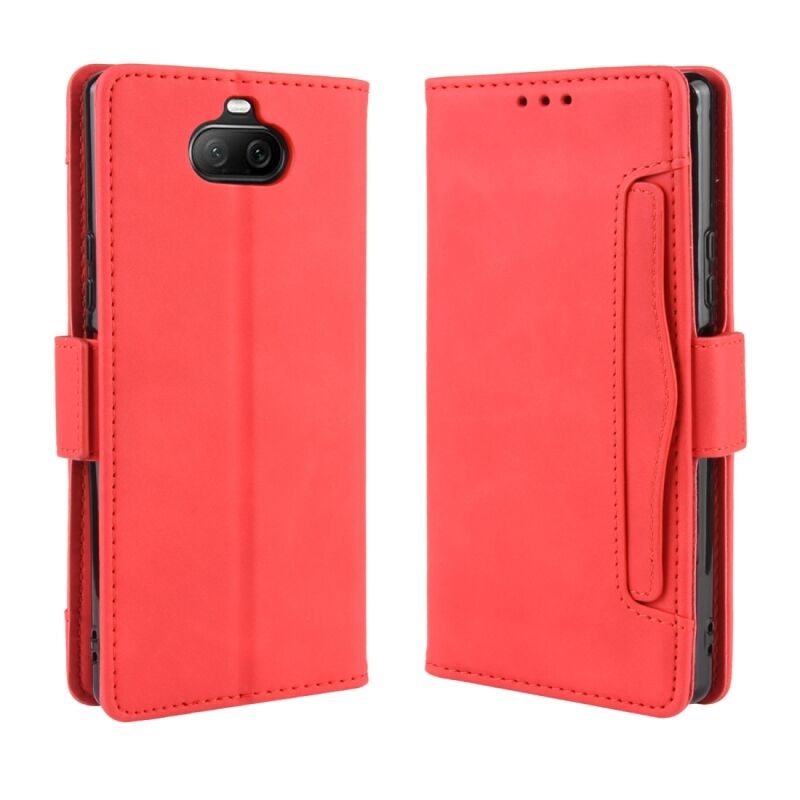 Για το Sony Xperia 8 Wallet Style Skin Feel Calf Pattern Leather Case με ξεχωριστή υποδοχή κάρτας (κόκκινο)