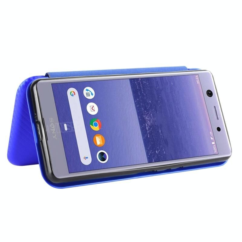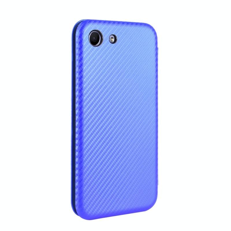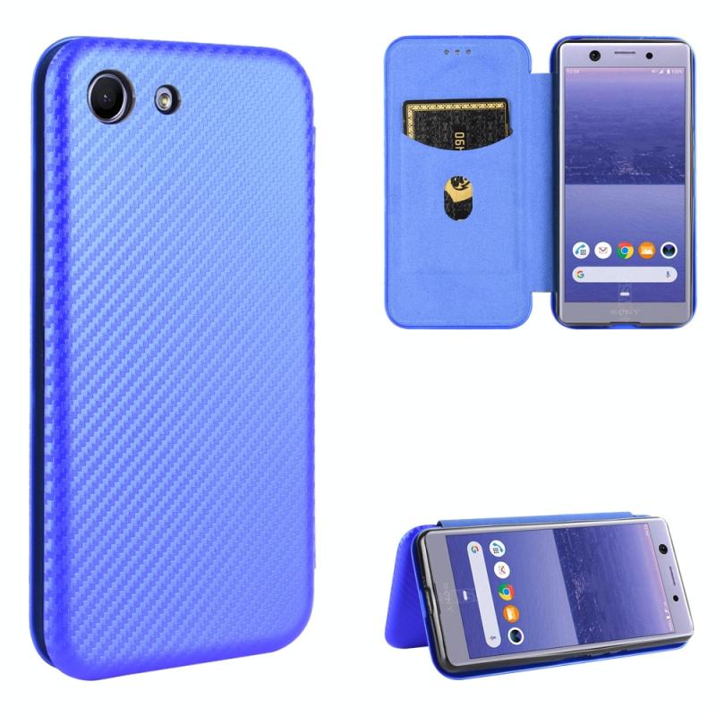 For Sony Xperia Ace Carbon Fiber Texture Horizontal Flip TPU + PC + PU Leather Case with Card Slot(Blue)