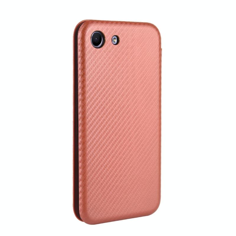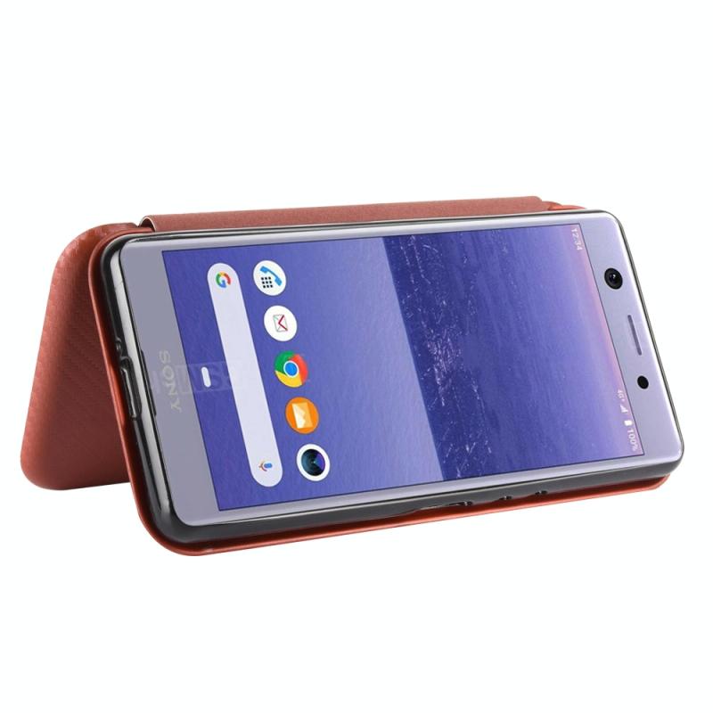 For Sony Xperia Ace Carbon Fiber Texture Horizontal Flip TPU + PC + PU Leather Case with Card Slot(Brown)