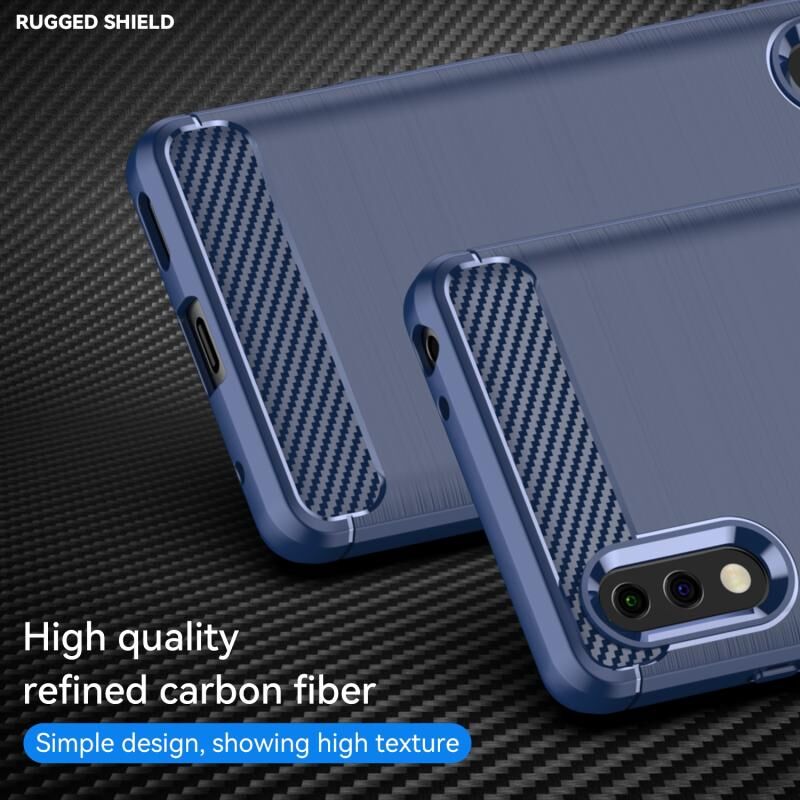 Για Sony Xperia Ace II βουρτσισμένη υφή ανθρακονήματα TPU υπόθεση τηλεφώνου (μπλε)