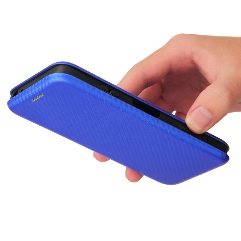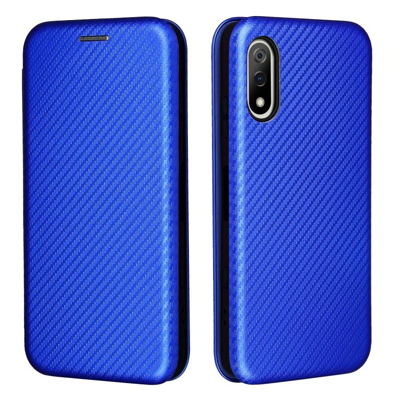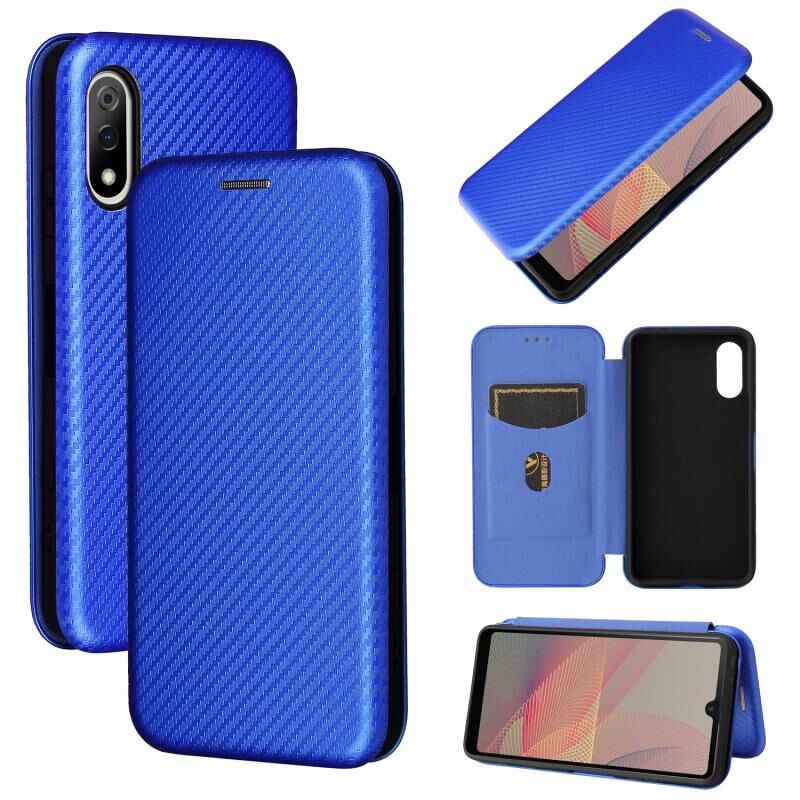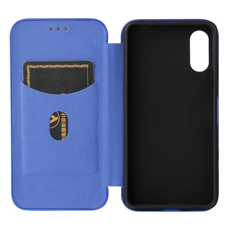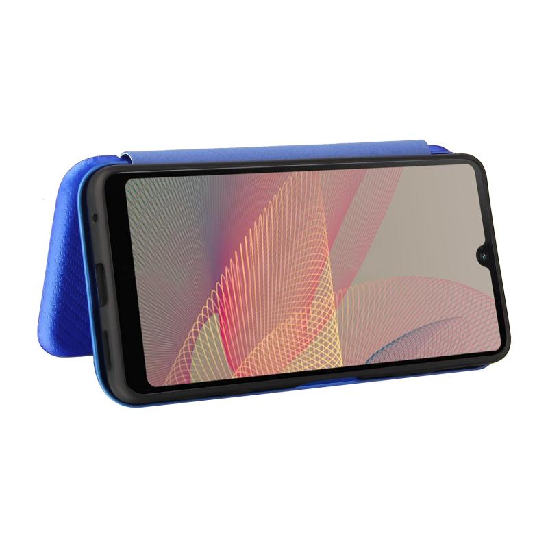 For Sony Xperia Ace II Carbon Fiber Texture Horizontal Flip TPU + PC + PU Leather Case with Card Slot(Blue)