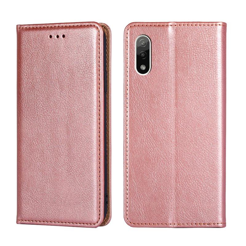 Θήκη τηλεφώνου από δέρμα με μαγνητικό κλείσιμο για Sony Xperia Ace II, γυαλιστερό λάδι, συμπαγές χρώμα (Καφέ)