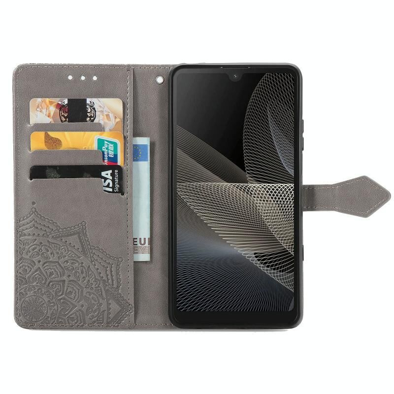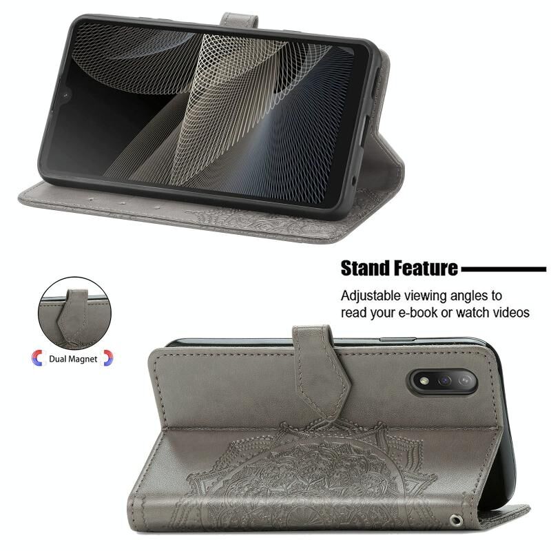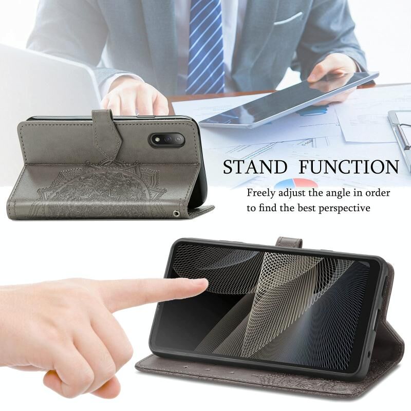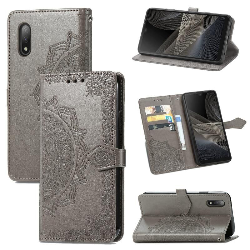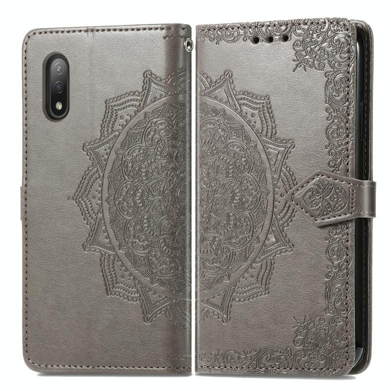 Για Sony Xperia Ace II Mandala λουλούδι ανάγλυφο οριζόντια Flip δερμάτινη θήκη με στήριγμα / υποδοχή για κάρτες / πορτοφόλι / κορδόνι (γκρι)