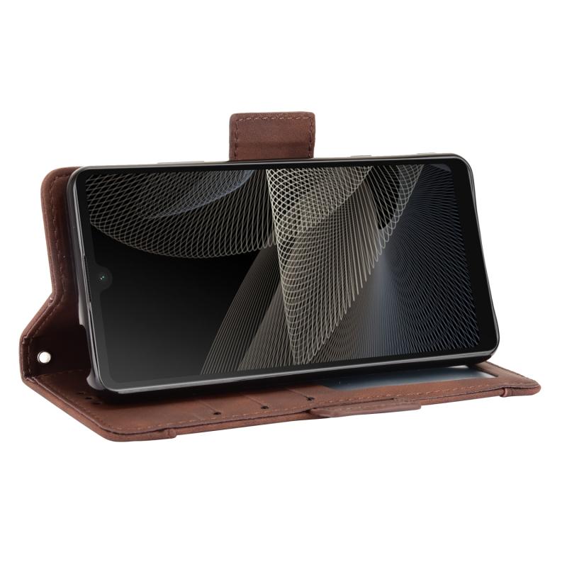 For Sony Xperia Ace II SO-41B Skin Feel Calf Pattern Horizontal Flip Leather Case with Holder & Card Slots & Photo Frame(Brown)