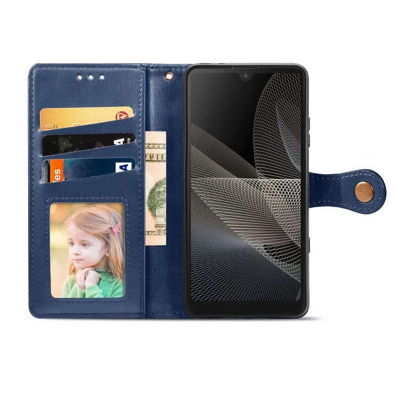 Για Sony Xperia ACE II Αμιγές χρώμα δερμάτινη θήκη τηλεφώνου με αγκράφα και κορνίζα φωτογραφιών, υποδοχή για κάρτες, πορτοφόλι και λειτουργία βάσης (μπλε)