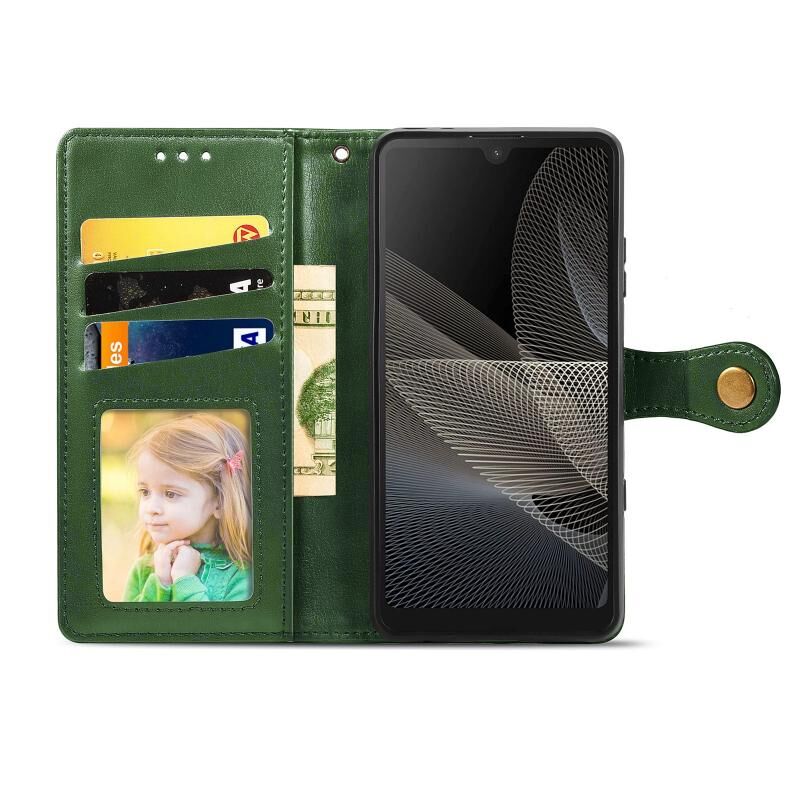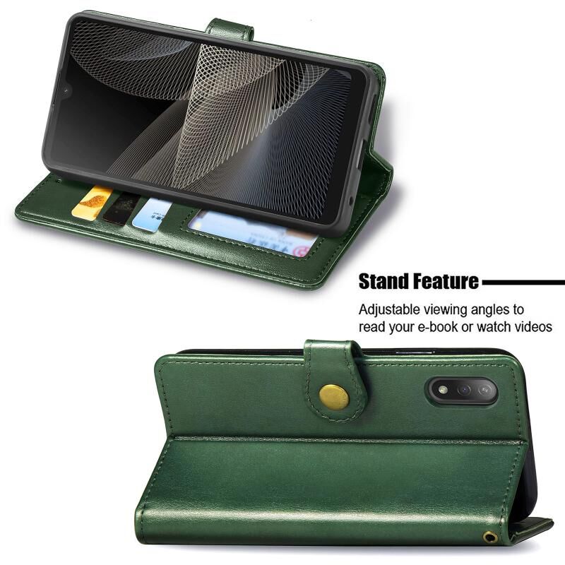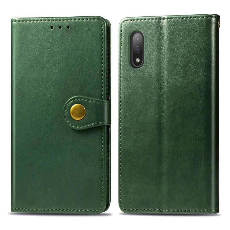 Για Sony Xperia ACE II Αμιγές χρώμα δερμάτινη θήκη τηλεφώνου με αγκράφα και κορνίζα φωτογραφιών, υποδοχή για κάρτες, πορτοφόλι και λειτουργία στάσης (πράσινο)