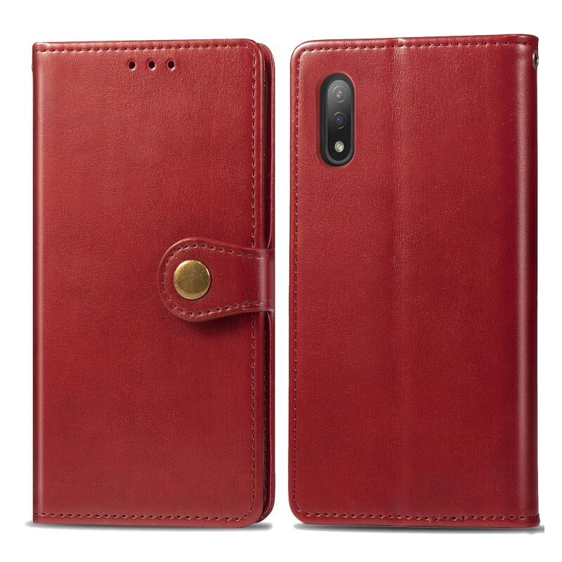 Για Sony Xperia ACE II Αμιγές χρώμα Δερμάτινη θήκη τηλεφώνου με αγκράφα και κορνίζα φωτογραφιών, υποδοχή για κάρτες, πορτοφόλι και λειτουργία στάσης (κόκκινο)