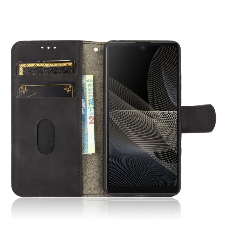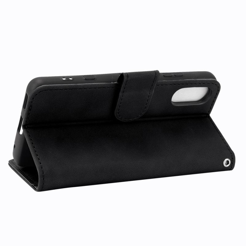 For Sony Xperia Ace II Solid Color Skin Feel Magnetic Buckle Horizontal Flip Calf Texture PU Leather Case with Holder & Card Slots & Wallet(Black)