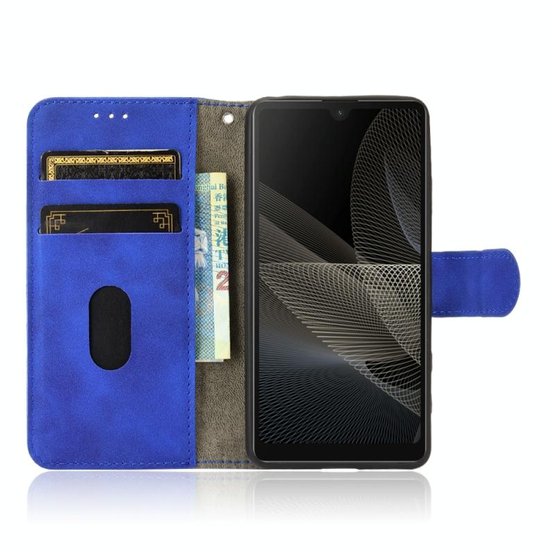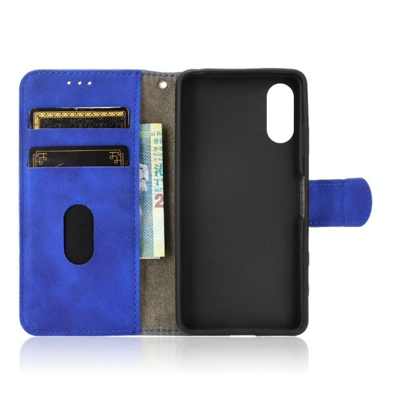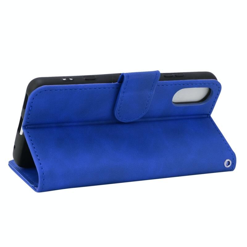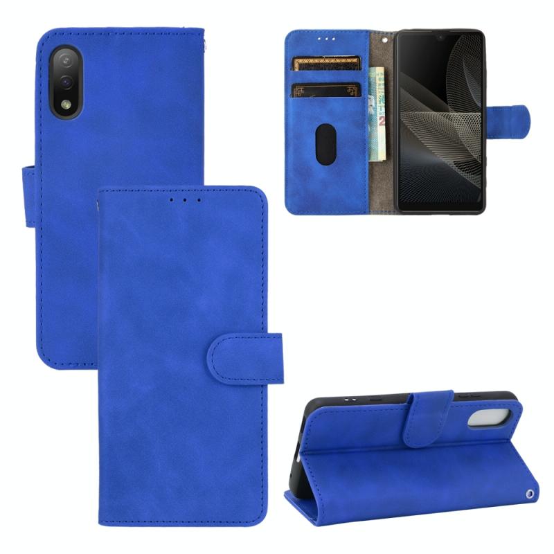 For Sony Xperia Ace II Solid Color Skin Feel Magnetic Buckle Horizontal Flip Calf Texture PU Leather Case with Holder & Card Slots & Wallet(Blue)
