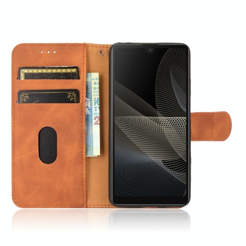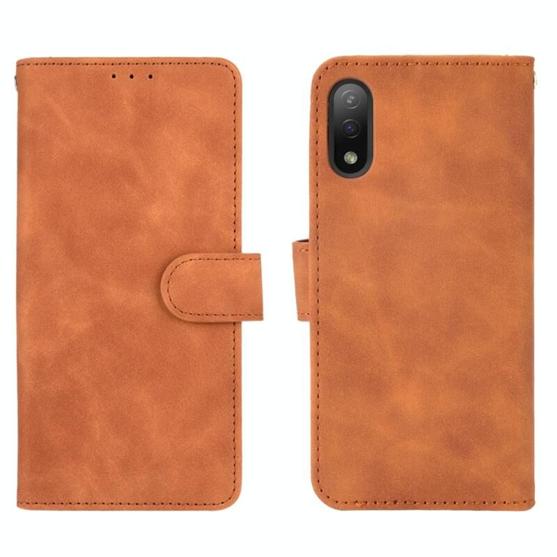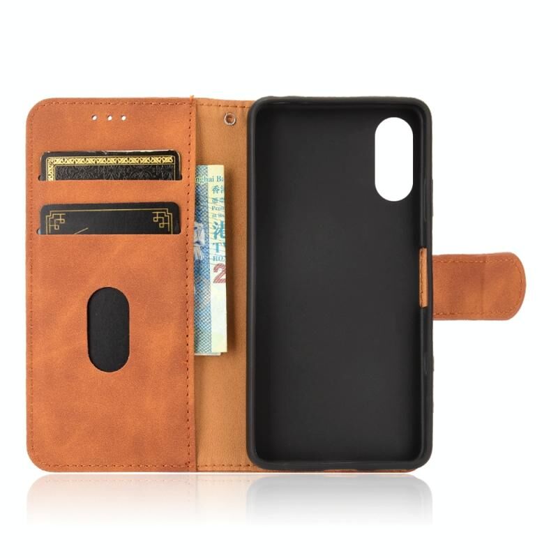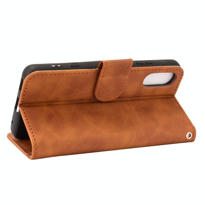 For Sony Xperia Ace II Solid Color Skin Feel Magnetic Buckle Horizontal Flip Calf Texture PU Leather Case with Holder & Card Slots & Wallet(Brown)
