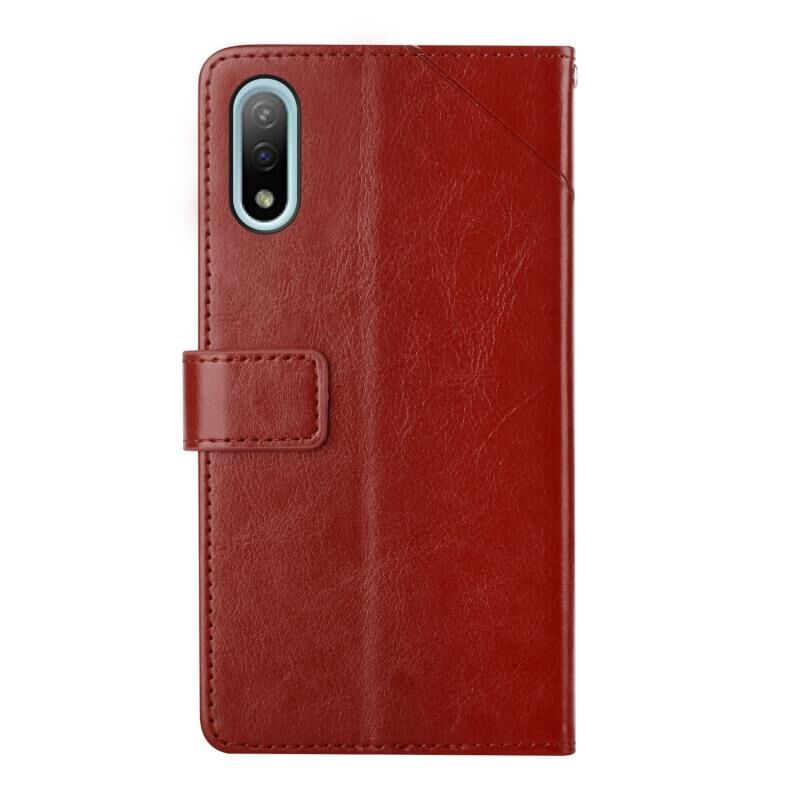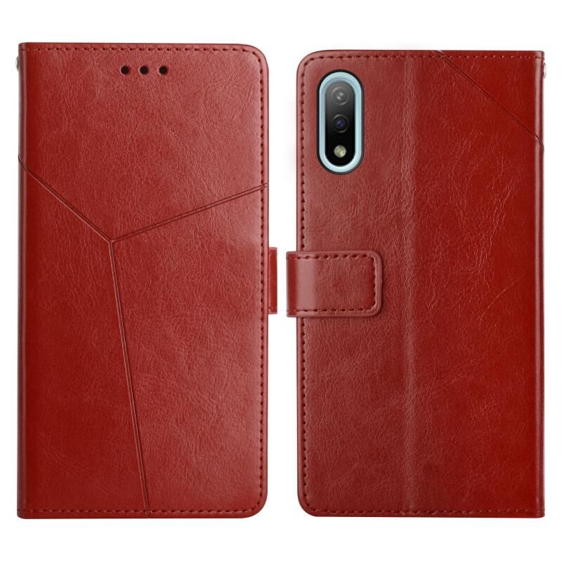 Για Sony Xperia Ace II Y Stitching Οριζόντια Flip δερμάτινη θήκη τηλεφώνου με θήκη & υποδοχές για κάρτες & πορτοφόλι & κορνίζα φωτογραφιών (καφέ)