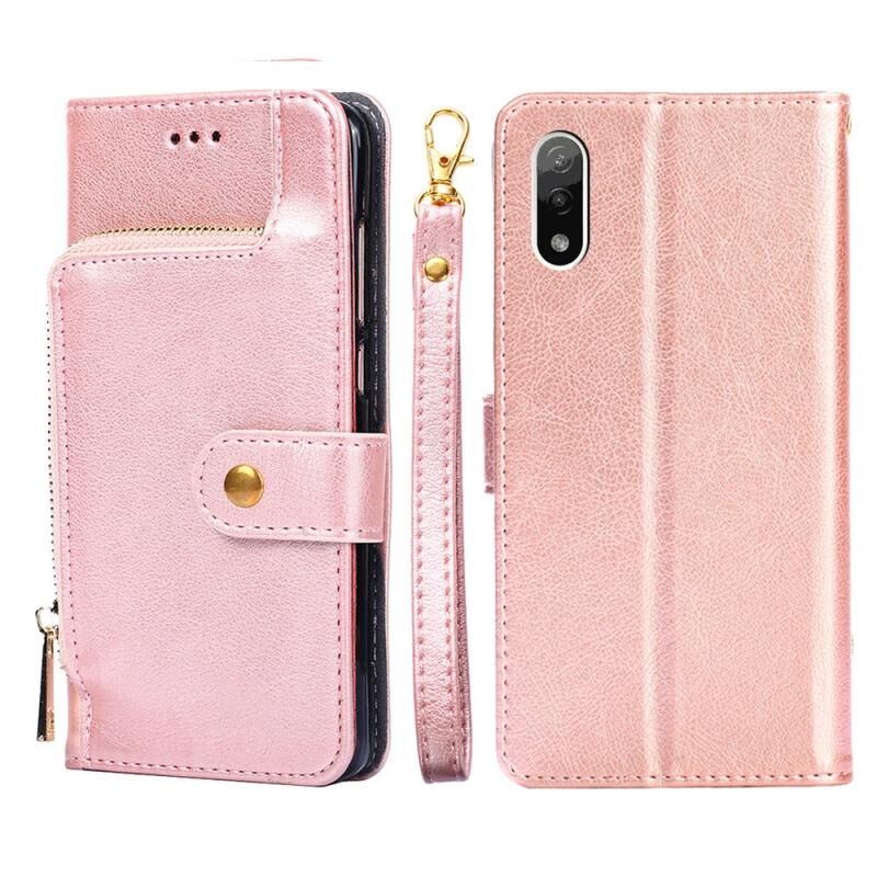 Για το Sony Xperia Ace II φερμουάρ τσάντα PU + TPU οριζόντια Flip δέρμα τηλέφωνο υπόθεση (ροζ χρυσό)